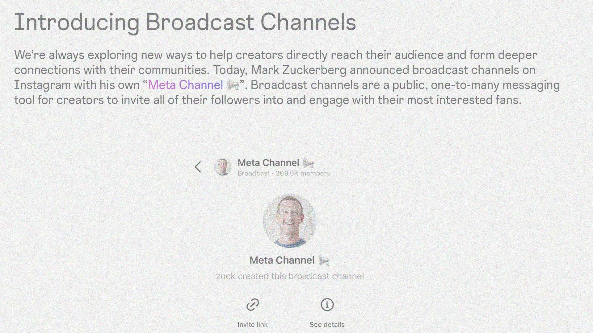 נתחיל מההתחלה – הברודקאסט הוא עוד פיצ'ר ש-META מכניסה לאינסטגרם אחרי ההצלחה שלו במקומות אחרים. ממש כמו שהסטוריז הגיעו מהסנאפצ'ט והרילים מהטיקטוק. את פיצ'ר הברודקאסט היה אפשר למצוא עד היום באפליקציות כמו וואטסאפ או טלגרם. המטרה שלו? עמוד של אדם / מותג בוא הוא יכול לשחרר הודעות כתובות בתפוצה רחבה לכל העוקבים שלו. בשונה מהצ'אט הרגיל פה העוקבים לא יכולים לשלוח הודעה או להשתתף בשיחה. יהיו מי שיקבילו את הדבר לעמוד טוויטר. או אפילו צ'אט הכתבים של N12.