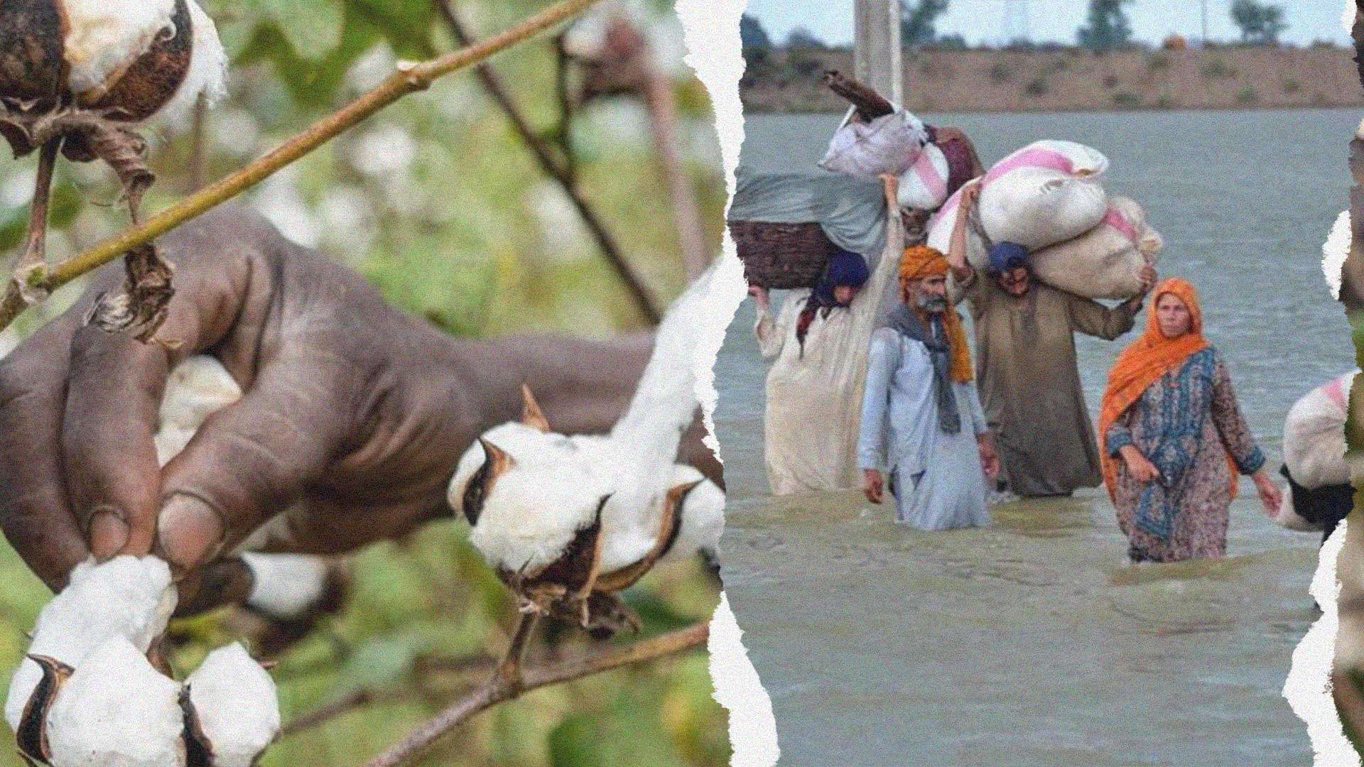 בעצם 15% משטח המדינה מוקדש לגידול כותנה ומרבית השטחים הללו עכשיו נמצאים תחת מים. שר התכנון של פקיסטן אשן איקבל, מעריך כי 45% מגידולי הכותנה במדינה נהרסו לגמרי בעקבות האסון. אך זו לא הצרה היחידה מגדלים ועובדים רבים בתעשיית הכותנה הפקיסטנית נפגעו גם הם מהאסון. דבר שיוביל לפגיעה רבה אף יותר בענף כולו.
